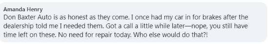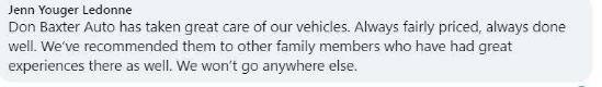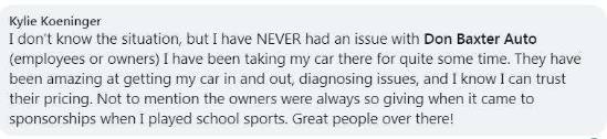 Don Baxter continues to provide great service! Appreciate the honesty & integrity! Keep up the great work Don!