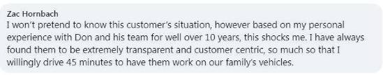 Donny has taken care of all our route cars and personal vehicles. He Does a great job and is very polite.